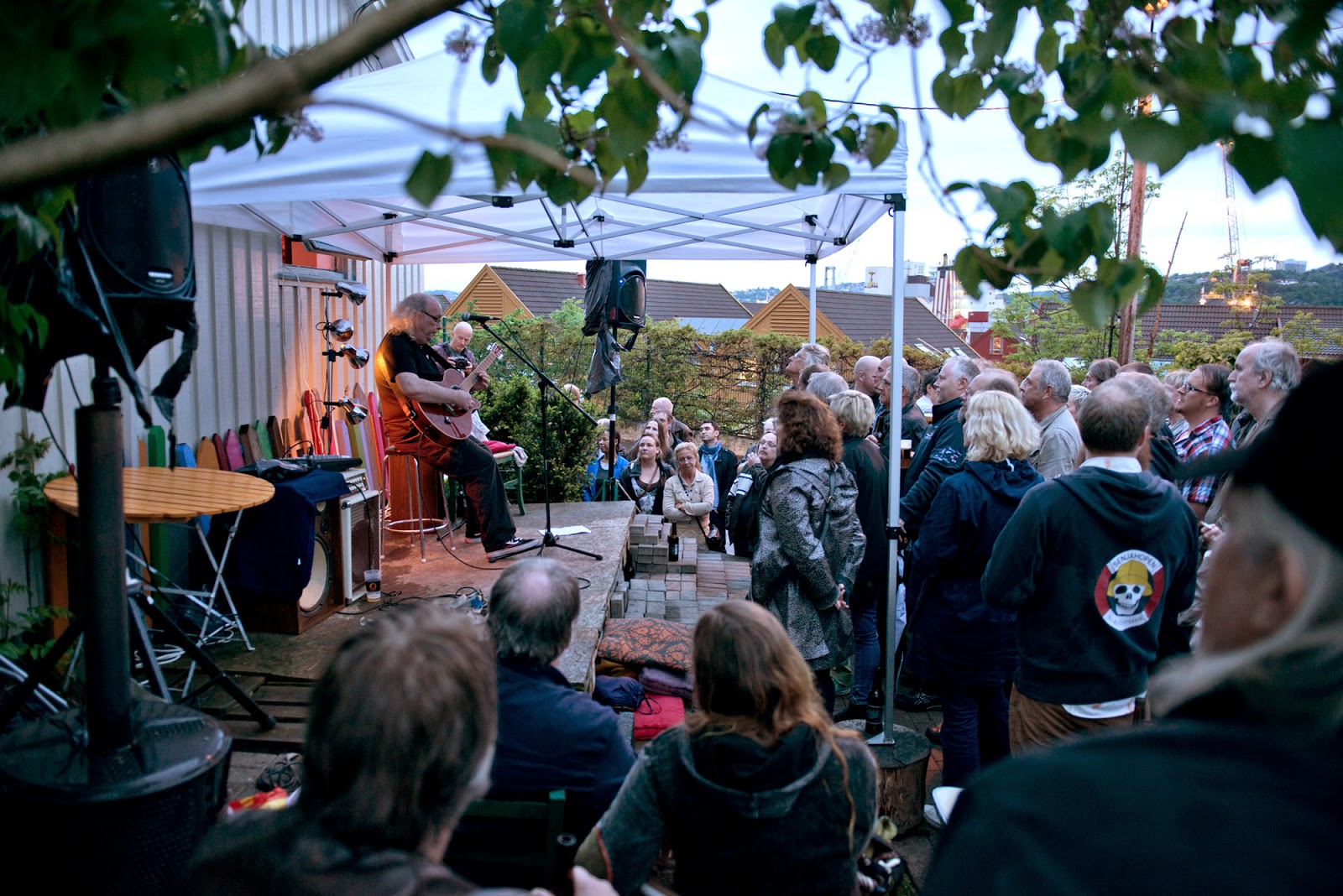 On the day of the gig. I met up with the members of The Larvik Vinyl Club at a barbecue in a garden near the venue. Terje flipped burgers and made us all welcome in the garden. Later he would provide all sorts of goodies after the show when I would be taking a brandy or three.